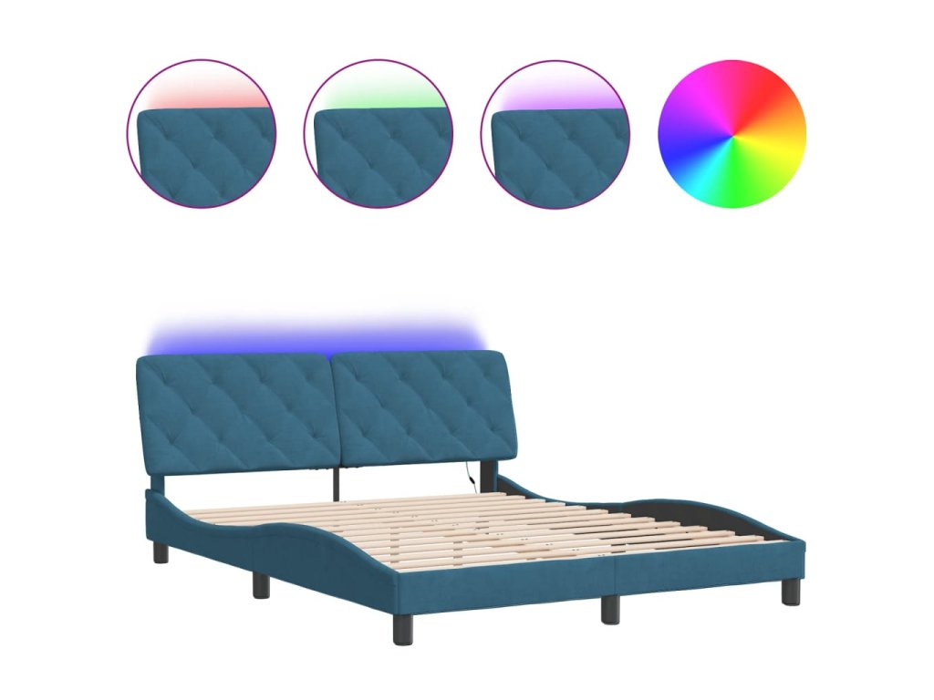 Rám postele s LED bez matrace modrý 160 x 200 cm samet 3213865