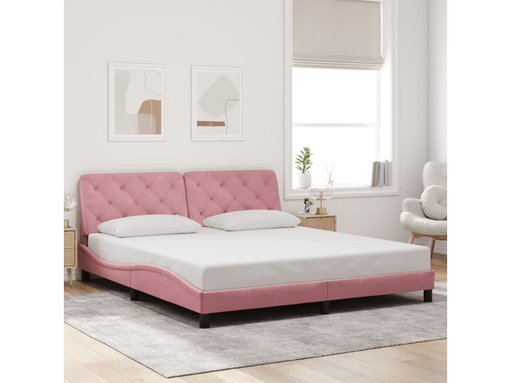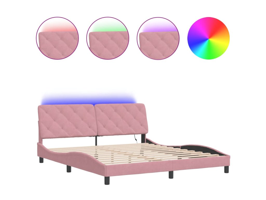 Rám postele s LED bez matrace růžový 180 x 200 cm samet 3213872