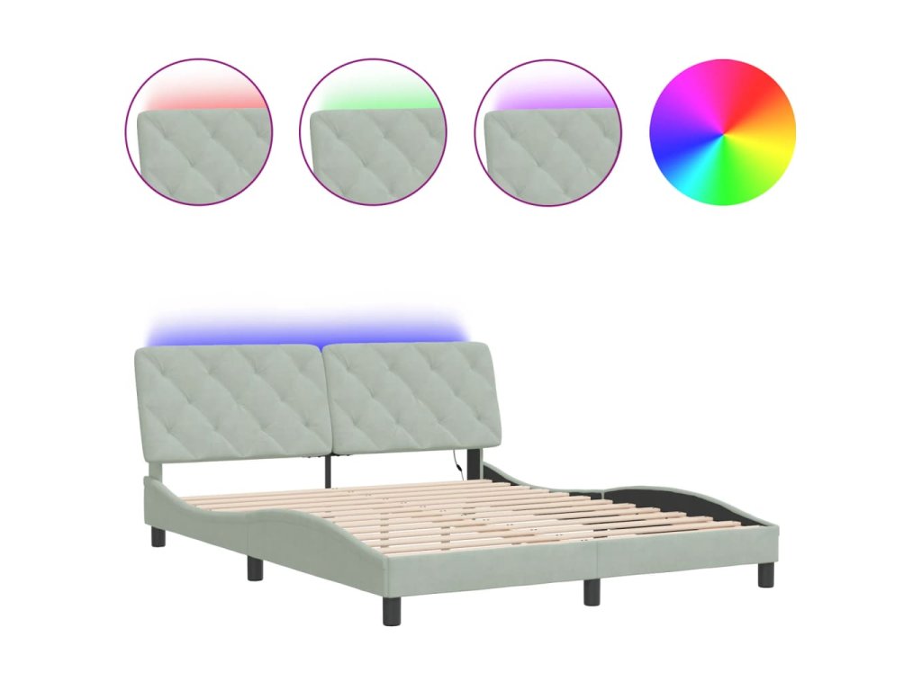 Rám postele s LED bez matrace světle šedý 160 x 200 cm samet 3213861