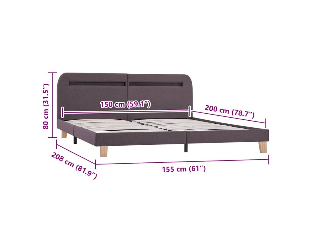 Rám postele s LED bez matrace Taupe látka 150x200 cm 281094