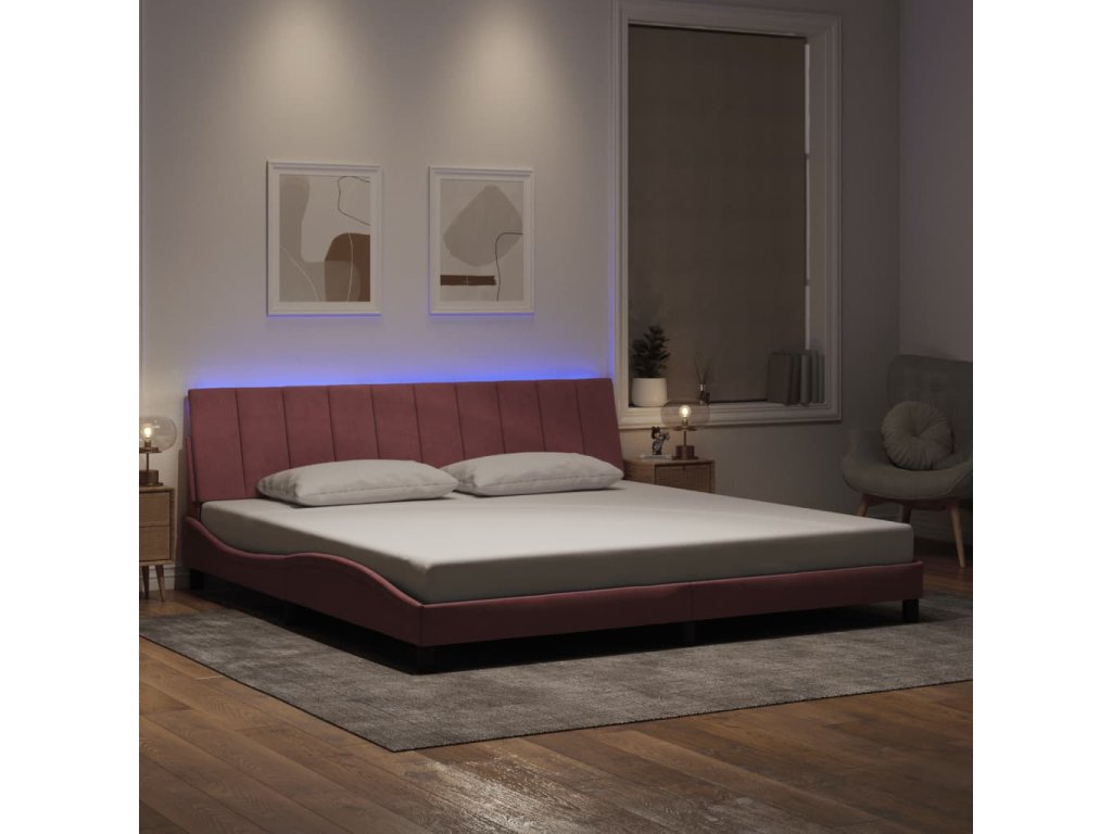 Rám postele s LED osvětlením bez matrace Hanko růžový 200 x 200 cm samet 3213804