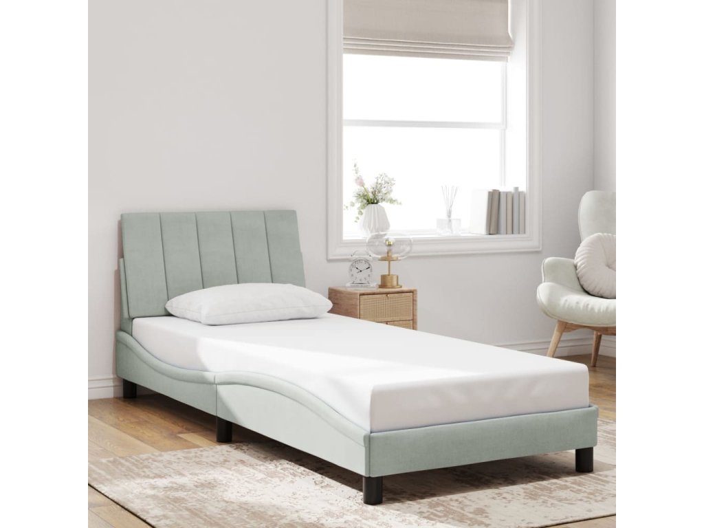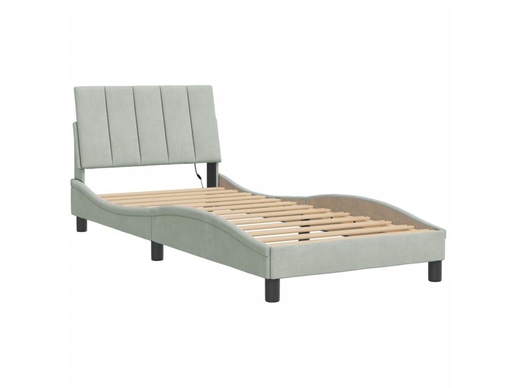 Rám postele s LED osvětlením bez matrace Hanko světle šedý 90 x 190 cm samet 3213751