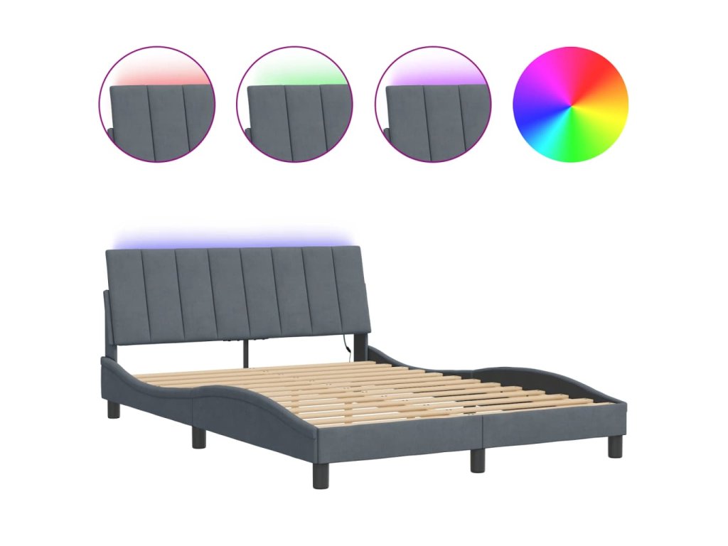 Rám postele s LED osvětlením bez matrace Hanko tmavě šedý 140 x 190 cm samet 3213776