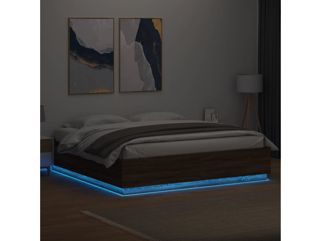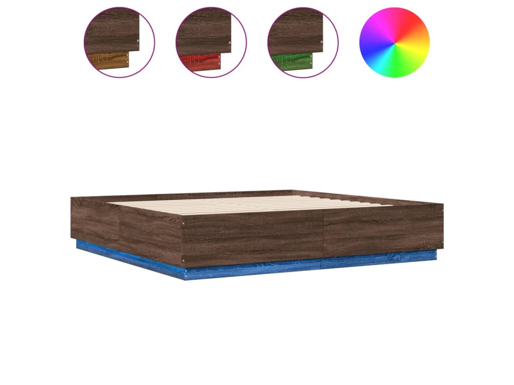 Rám postele s LED osvětlením hnědý dub 200 x 200 cm kompozit 3209589