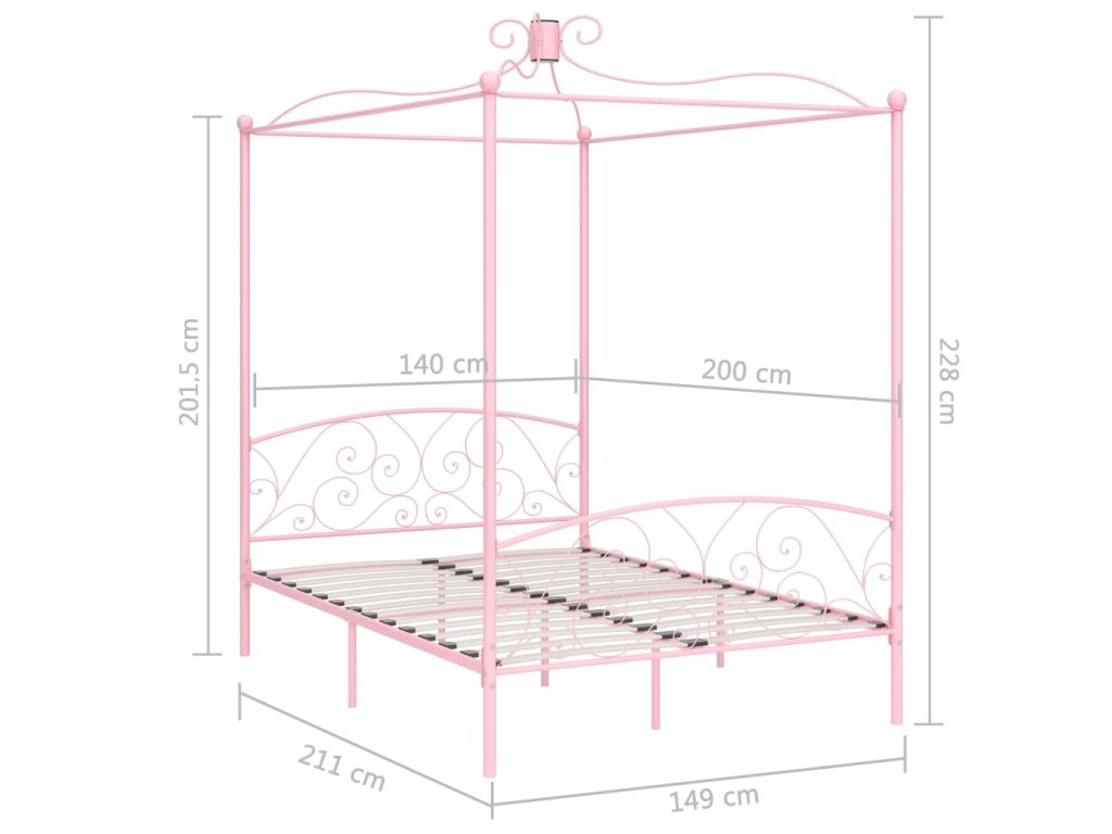 Rám postele s nebesy růžový kovový 140 x 200 cm 284489