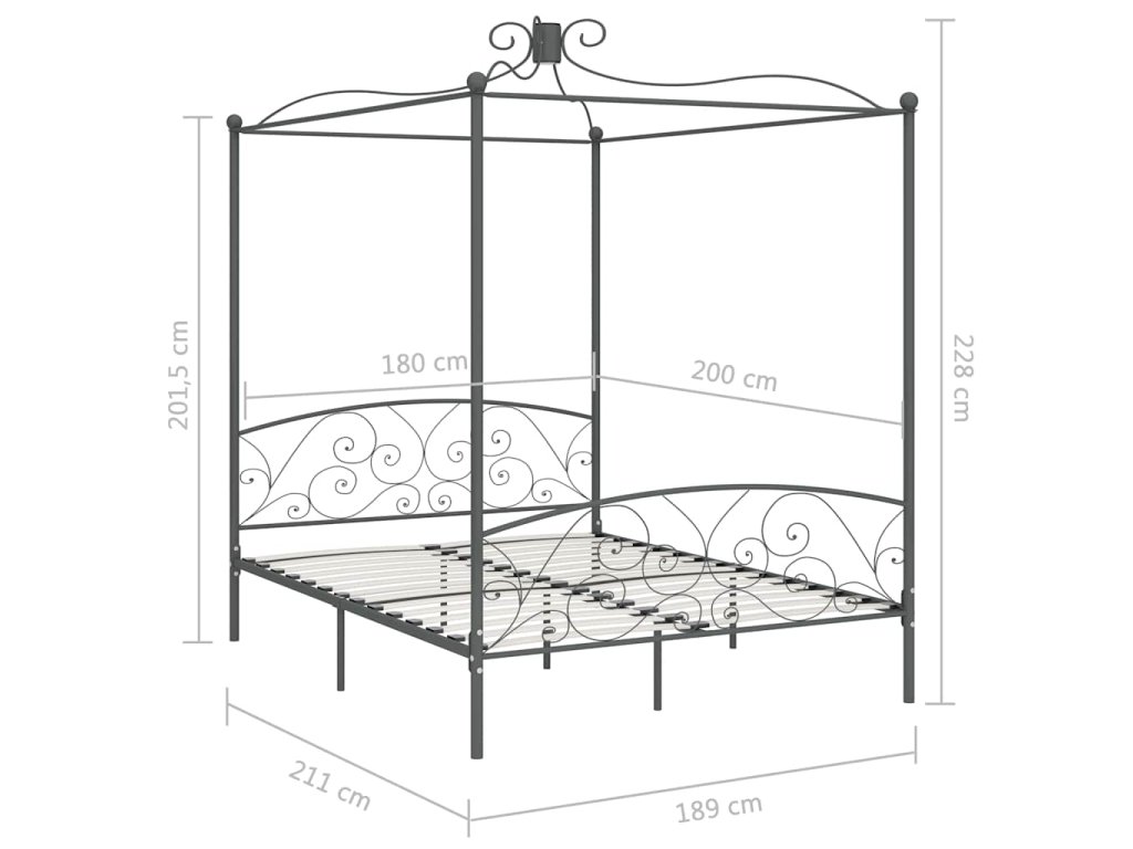 Rám postele s nebesy šedý kovový 180 x 200 cm 284485