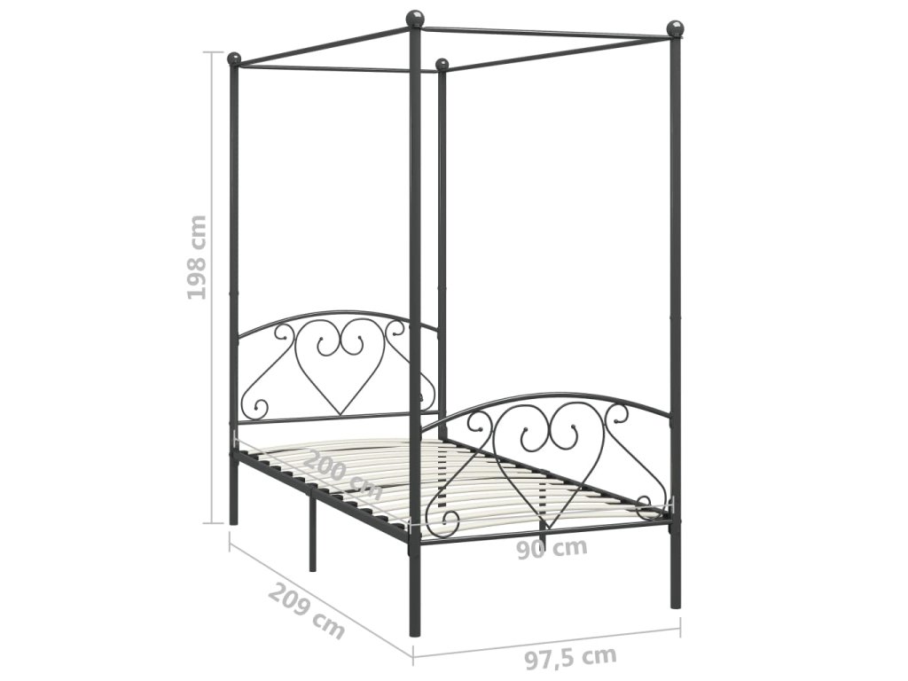 Rám postele s nebesy šedý kovový 90 x 200 cm 284440