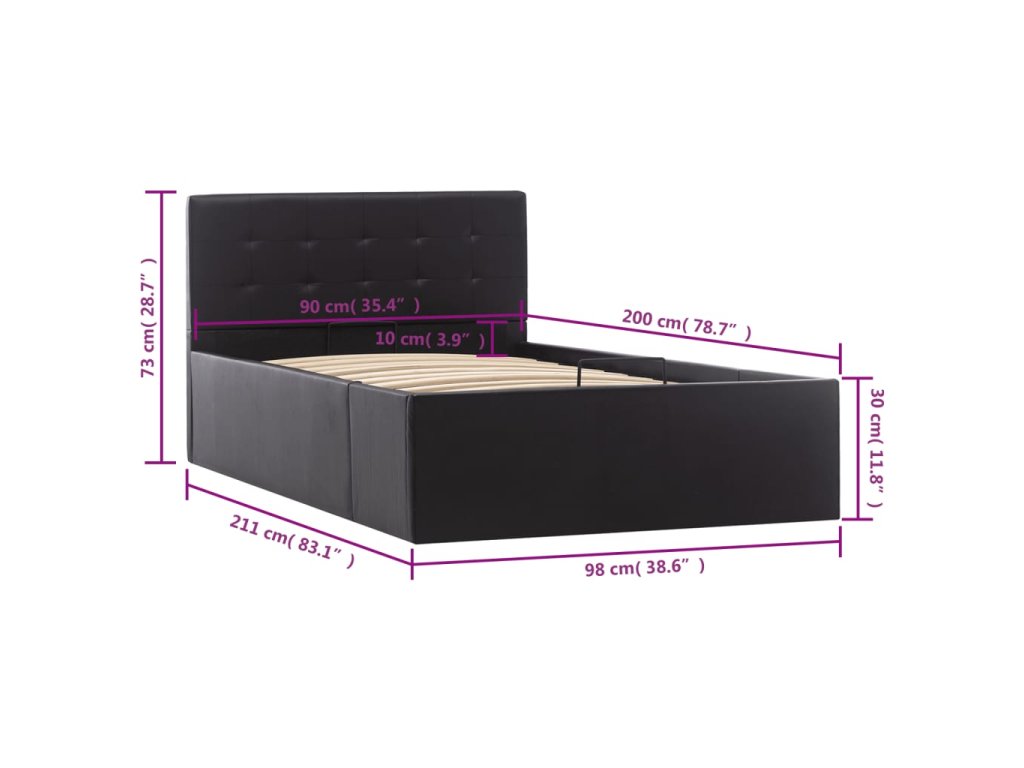 Rám postele s úložným prostorem černý umělá kůže 90 x 200 cm 285510