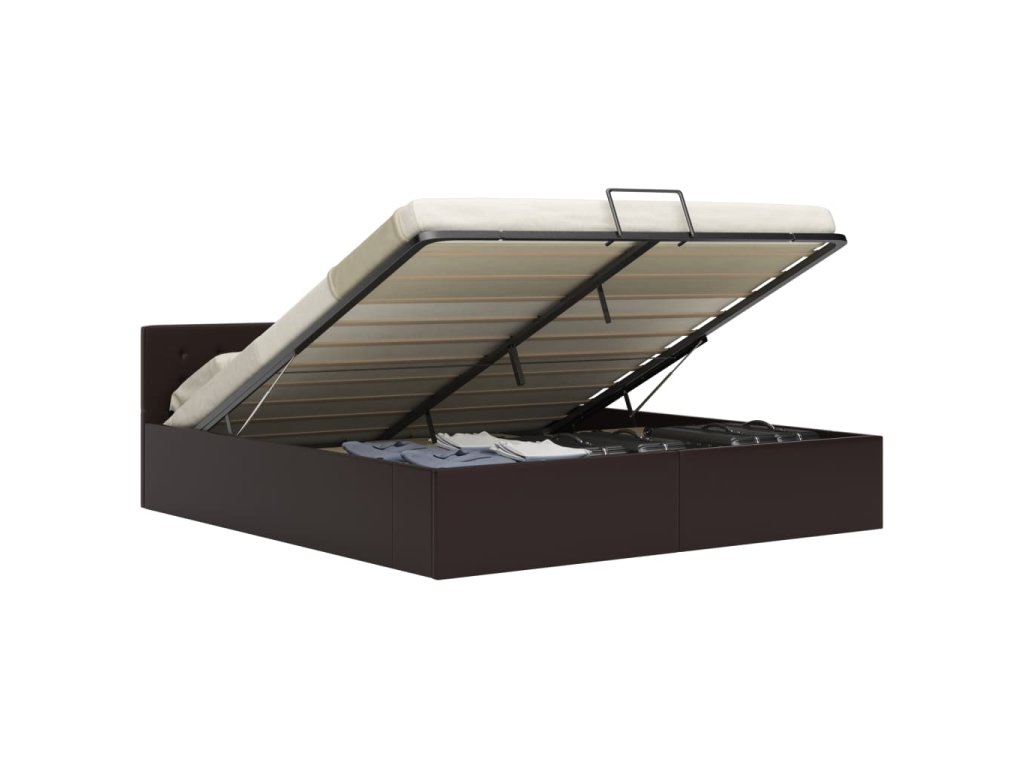 Ocelový rám s práškovým nástřikem a překližkové lamely dodávají posteli s úložným prostorem na robustnosti a odolnosti. Čalounění z lesklé kůže přímo vybízí k ulehnutí a snadno se udržuje. Sestavení produktu je jednoduché. Rám postele je vhodný pro matrace o rozměrech 180 x 200 cm.