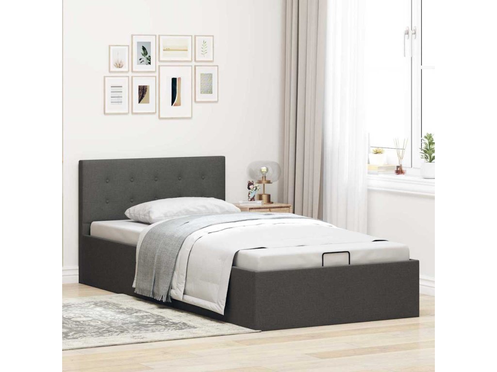 Rám postele s úložným prostorem tmavě šedý textil 100 x 200 cm 285571