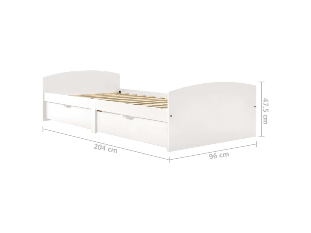 Rám postele se 2 zásuvkami bílý masivní borovice 90 x 200 cm 322155