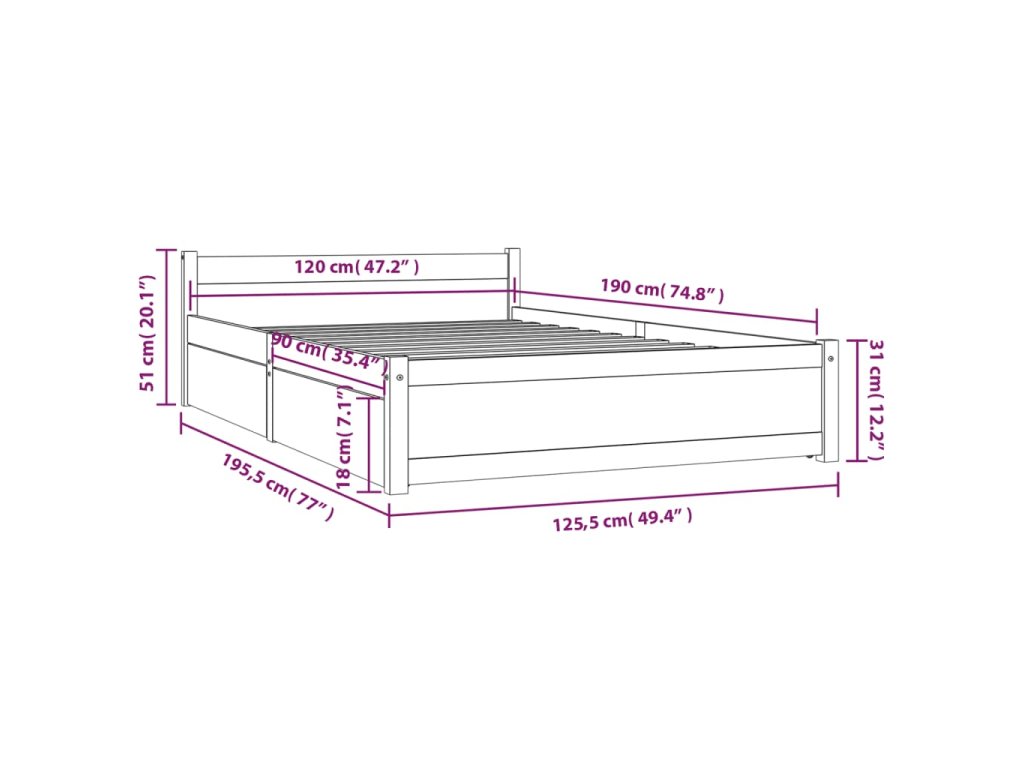 - Tento rám postele je vhodný pro matrace o rozměrech 120 x 190 cm (4FT Small Double).