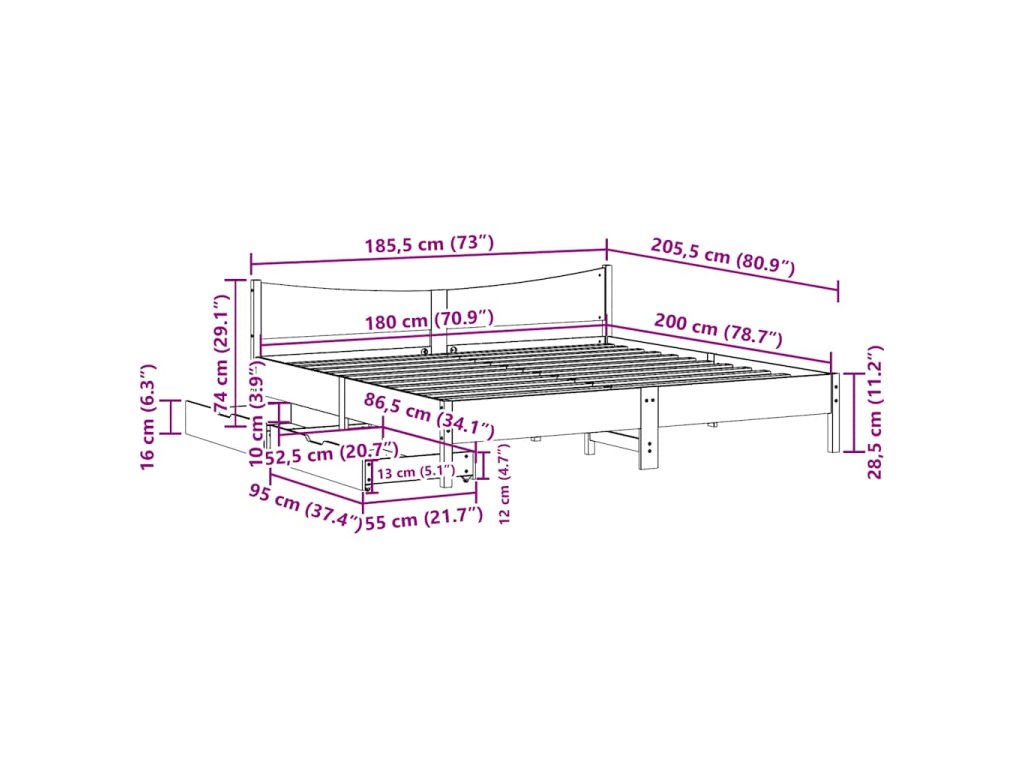 Rám postele se zásuvkami 180 x 200 cm masivní borovice 3301896