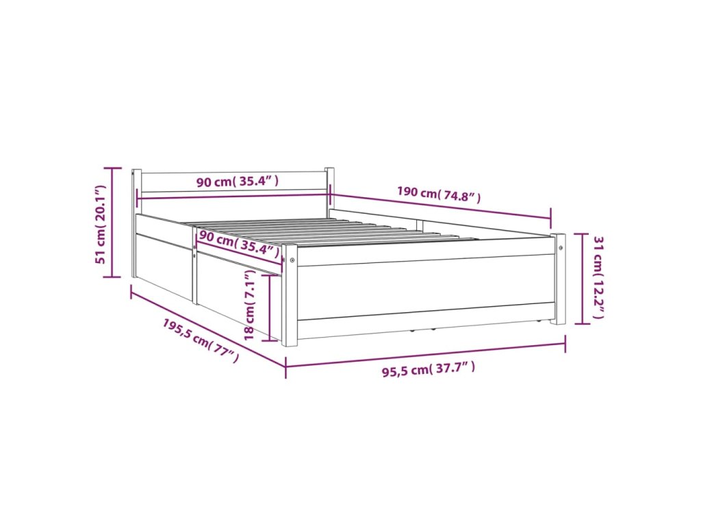 - Tento rám postele je vhodný pro matrace o rozměrech 90 x 190 cm (3FT Single).