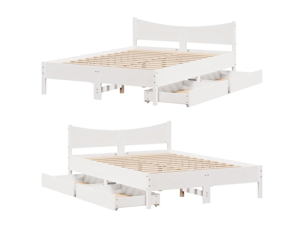 Rám postele se zásuvkami bílý 135 x 190 cm masivní borovice 3301921