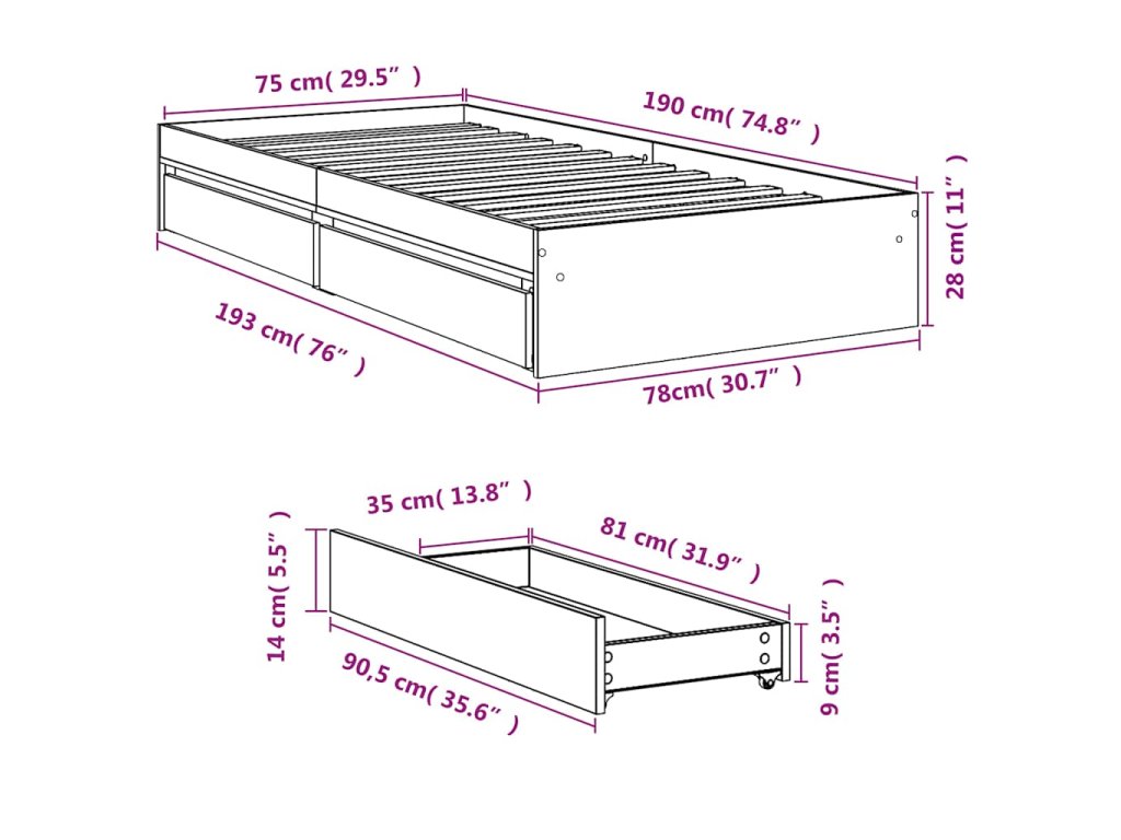 Rám postele se zásuvkami bílý 75 x 190 cm kompozitní dřevo 3280713