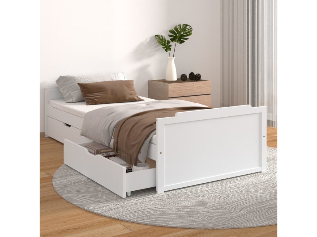 Rám postele se zásuvkami bílý masivní borové dřevo 90 x 200 cm 322160
