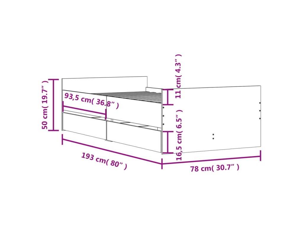Rám postele se zásuvkami dub sonoma 75 x 190 cm Small Single 3207387