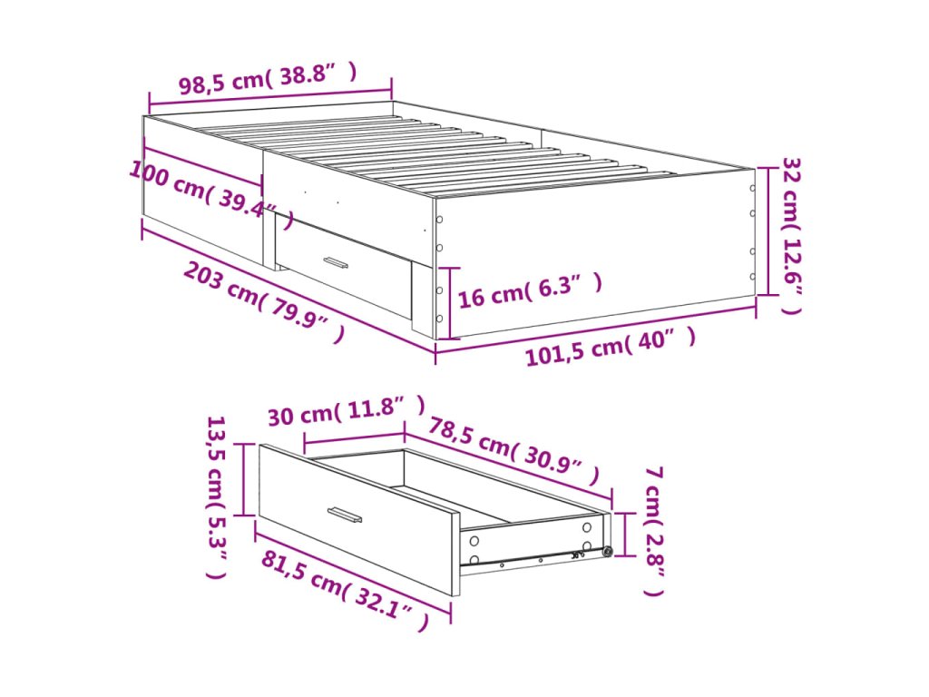 Rám postele se zásuvkami hnědý dub 100x200 cm kompozitní dřevo 3280425