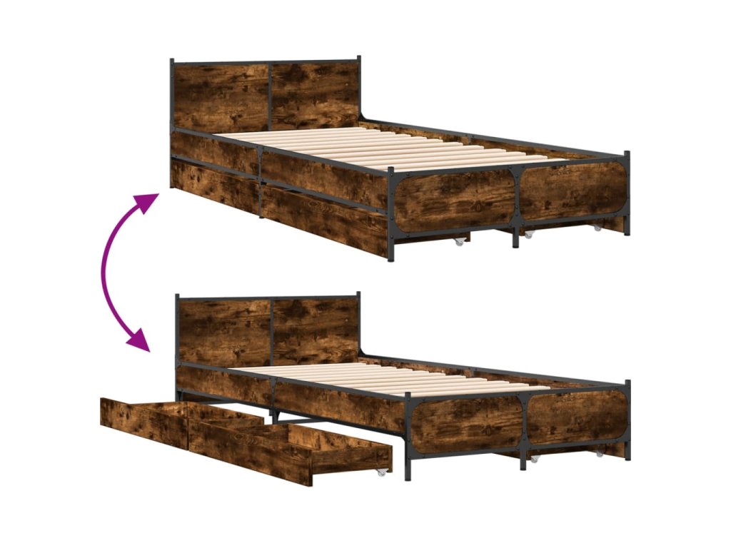Rám postele se zásuvkami kouřový dub 75x190 cm kompozitní dřevo 3279974