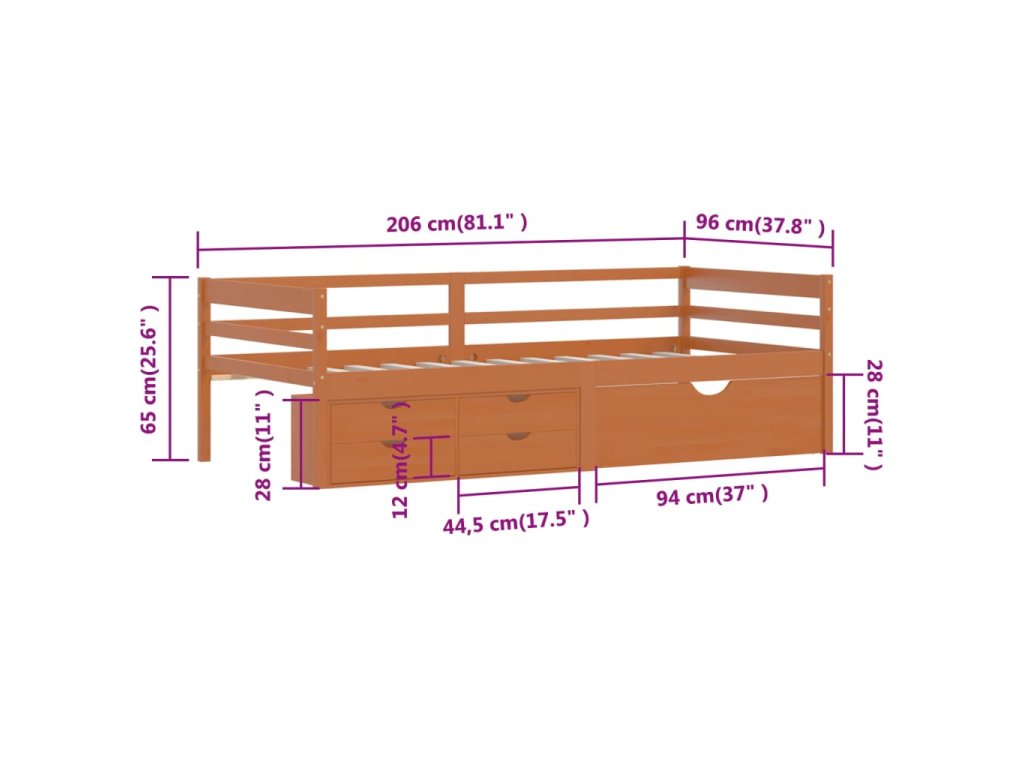 Rám postele se zásuvkami medově hnědé borovice 90 x 200 cm 322058