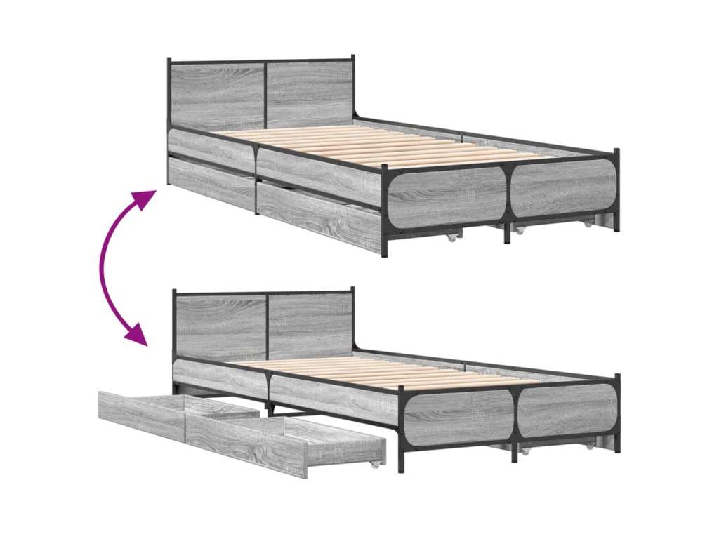 Rám postele se zásuvkami šedý sonoma 75x190 cm kompozitní dřevo 3279975