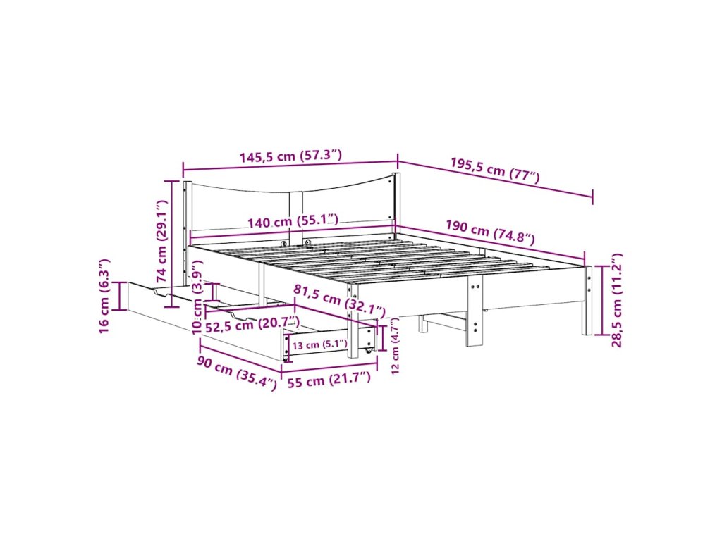 Rám postele se zásuvkami voskově hnědý 140x190cm masiv borovice 3301919
