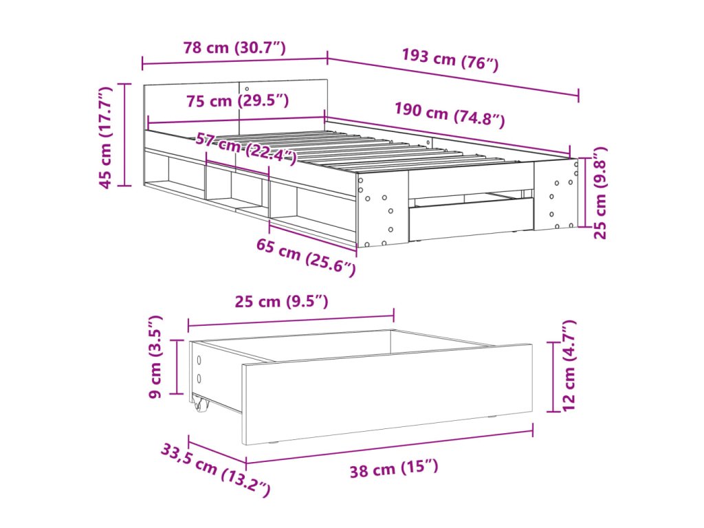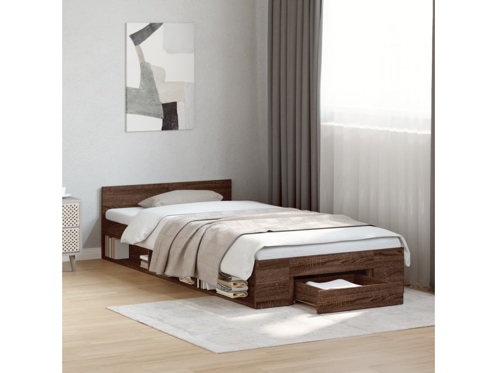 Rám postele se zásuvkou hnědý dub 75 x 190 cm kompozitní dřevo 3280810