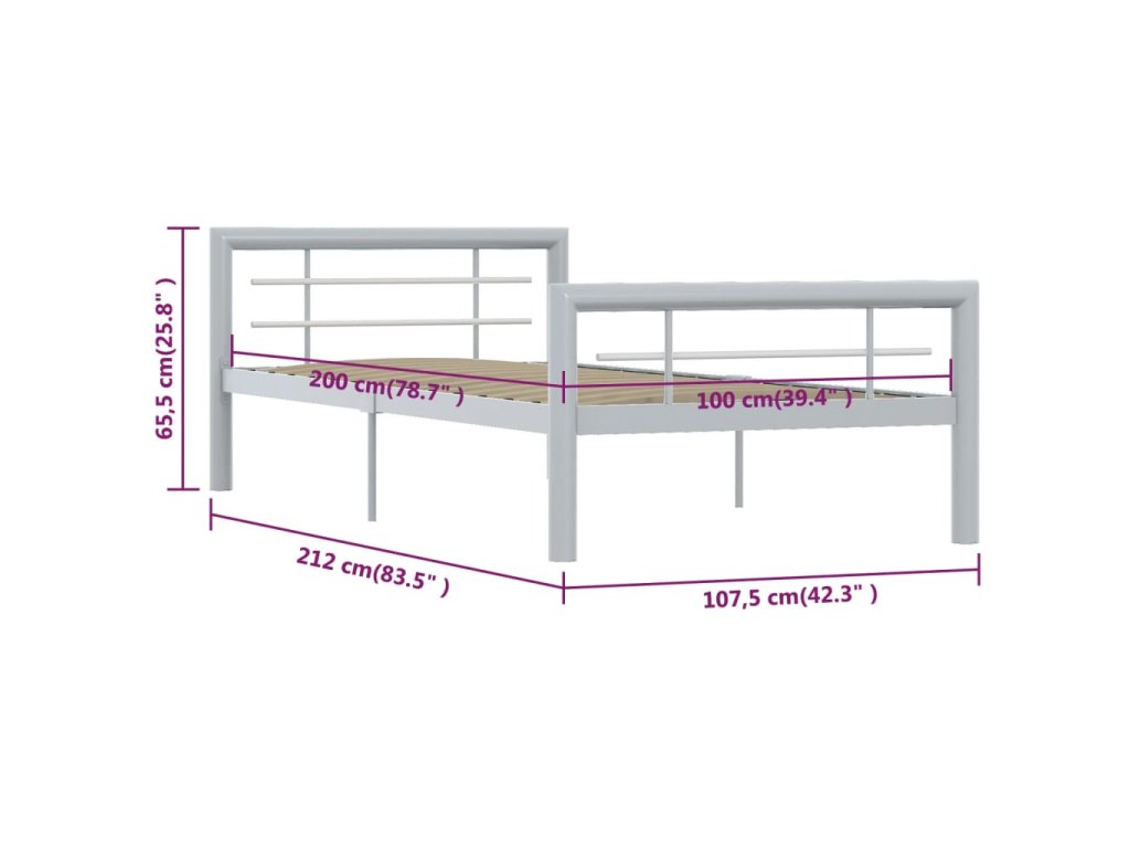 Rám postele šedobílý kov 100 x 200 cm 284557
