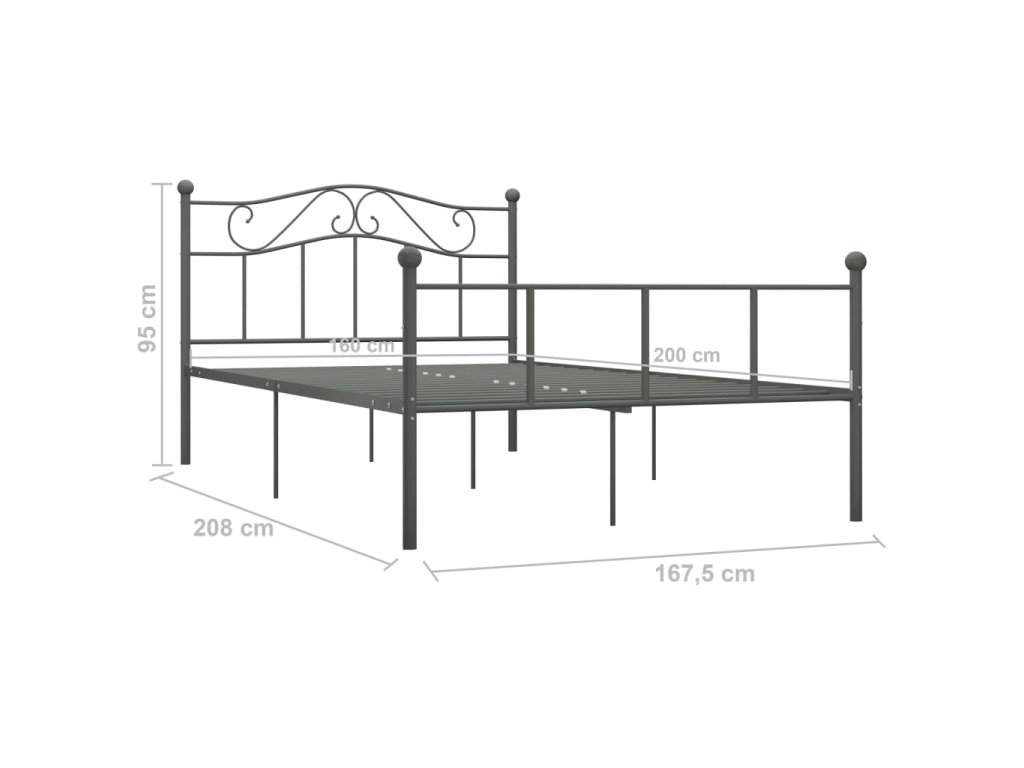 Rám postele šedý kov 160 x 200 cm 284534
