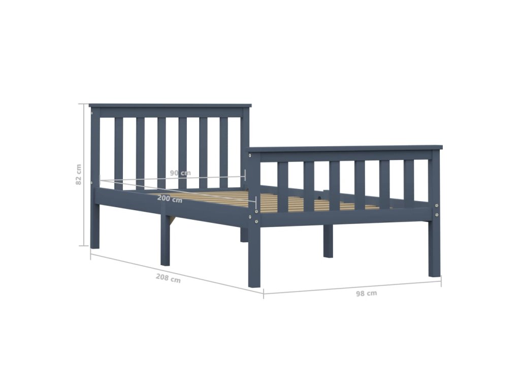 Rám postele šedý masivní borové dřevo 100 x 200 cm 283227
