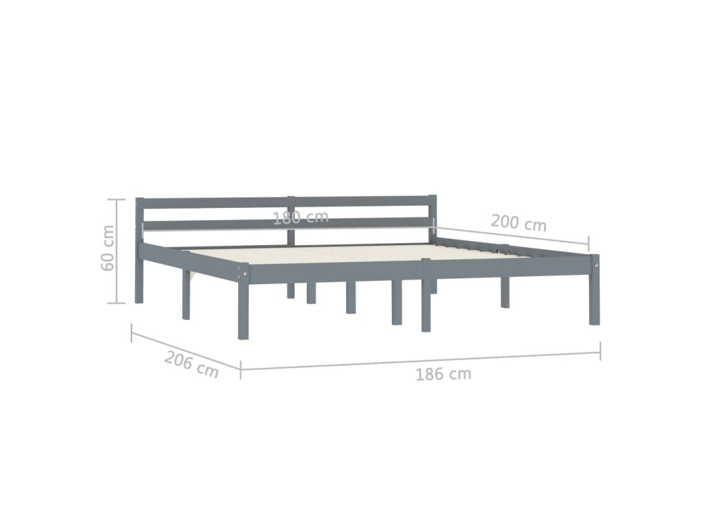 Rám postele šedý masivní borové dřevo 180 x 200 cm 283201