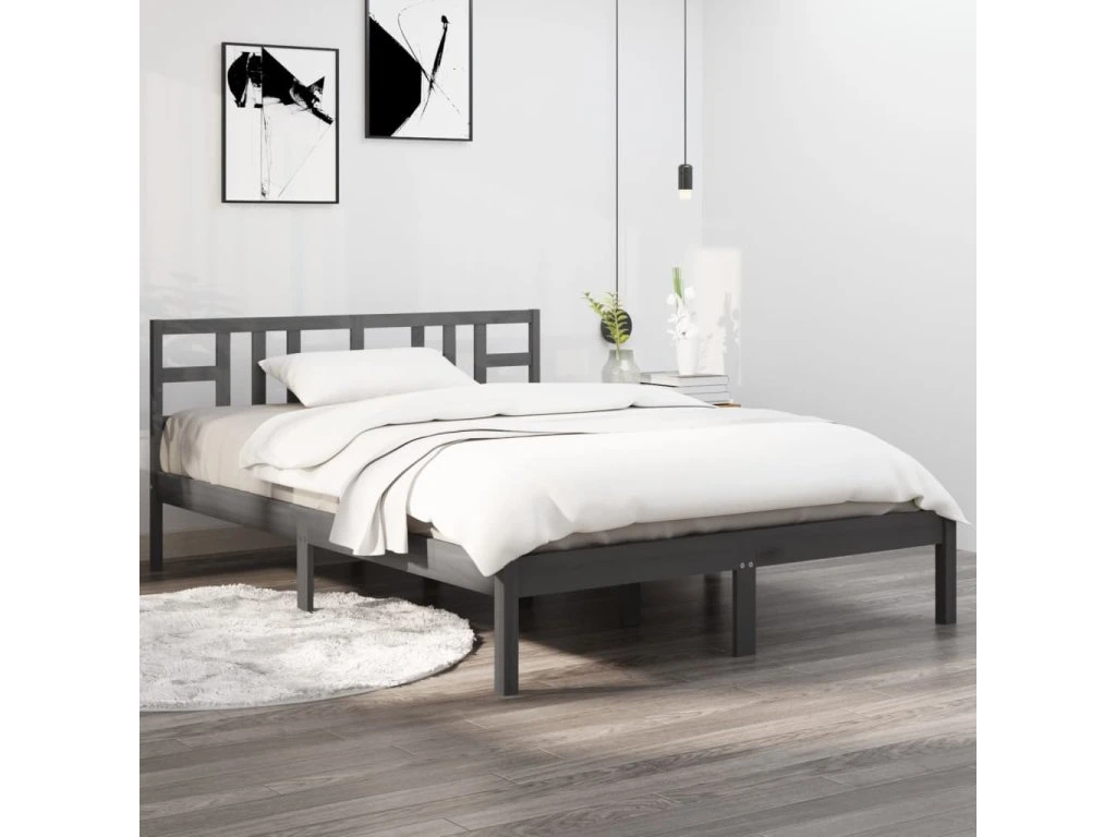 Rám postele šedý masivní dřevo 200 x 200 cm 3105427