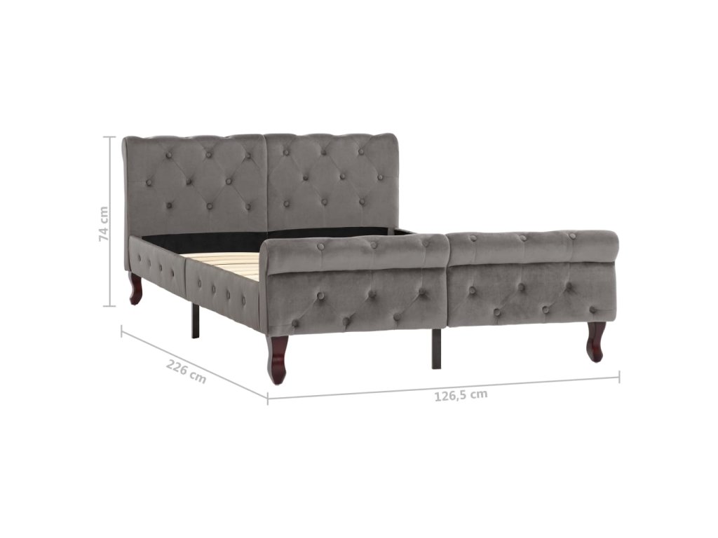 Rám postele vnese do vaší ložnice elegantní šarm. Je vyrobený z překližky a oceli, takže je tento polstrovaný rám postele velmi pevný a odolný. Nohy z masivního borového dřeva přidávají posteli na odolnosti. Kromě toho je rám postele čalouněný měkkým sametem, který má příjemný vzhled a je hladký na dotek. Tento rám postele lze také snadno sestavit.