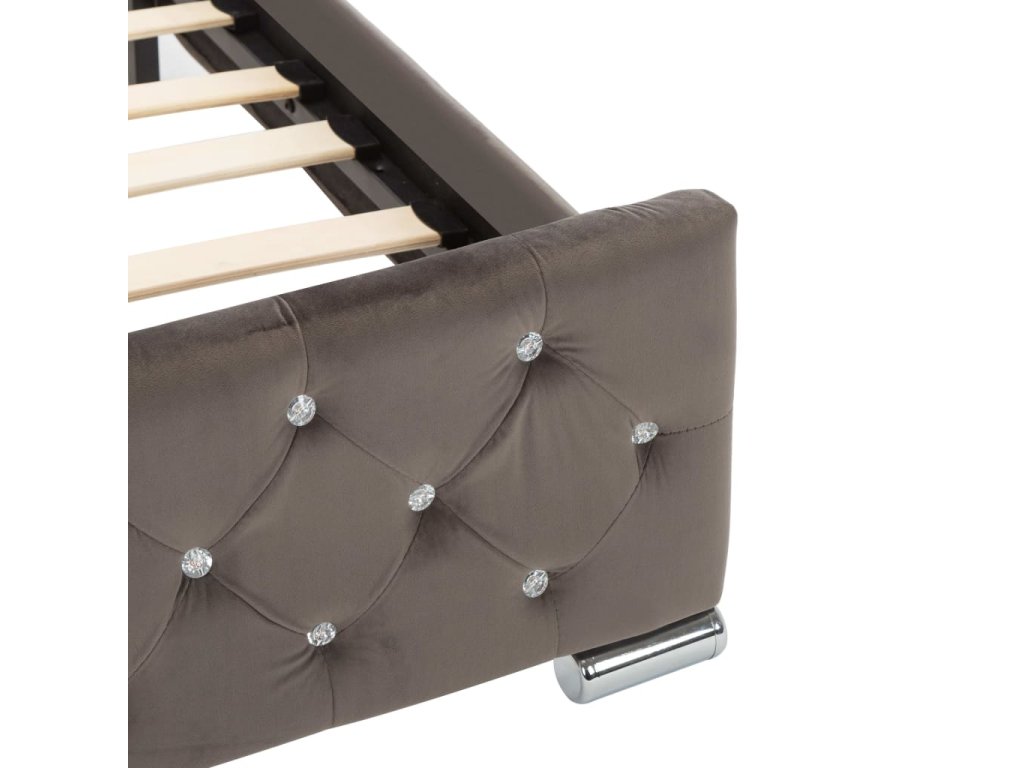 Rám postele se vyznačuje nenápadným, a přitom půvabným designem, který do vaší ložnice vnese elegantní šarm. Rám postele je vyrobený ze dřeva a oceli, je tedy mimořádně pevný a má dlouhou životnost. Kovové nohy přidávají posteli na odolnosti. Postelový rám je navíc čalouněný odolným sametem, vyloženě tedy svádí k odpočinku a snadno se čistí. Tento rám postele je vhodný pro matrace o rozměrech 140 x 200 cm.
