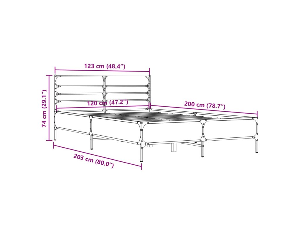 Rám postele šedý sonoma 120 x 200 cm kompozitní dřevo a kov 3280040