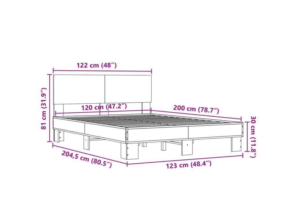 Rám postele šedý sonoma 120 x 200 cm kompozitní dřevo a kov 3280200