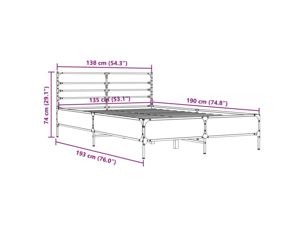 Rám postele šedý sonoma 135 x 190 cm kompozitní dřevo a kov 3280075