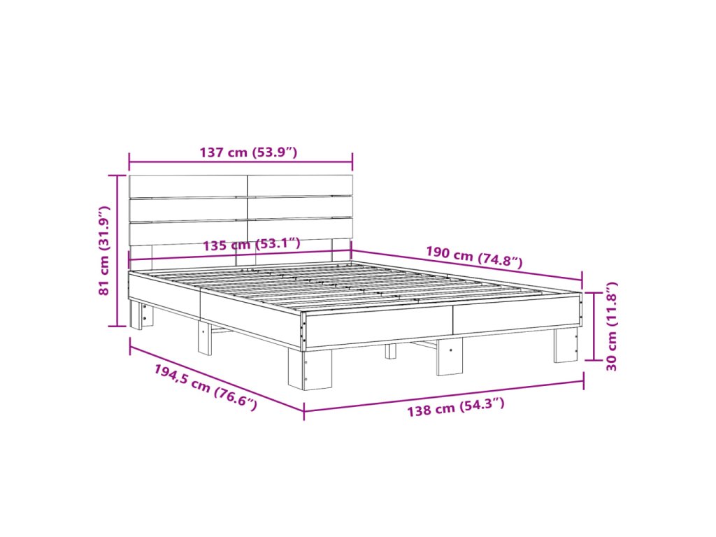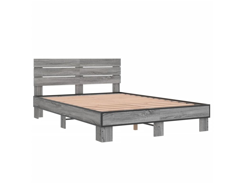 Rám postele šedý sonoma 135 x 190 cm kompozitní dřevo a kov 3280165