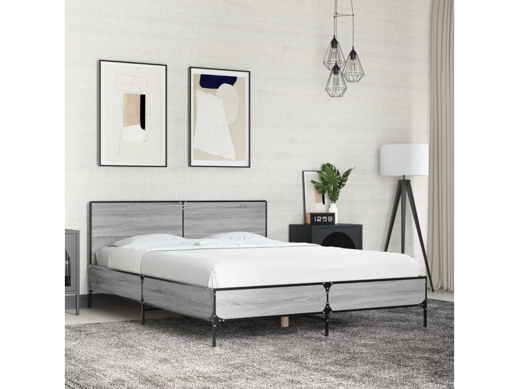 Rám postele šedý sonoma 140 x 190 cm kompozitní dřevo a kov 3280035