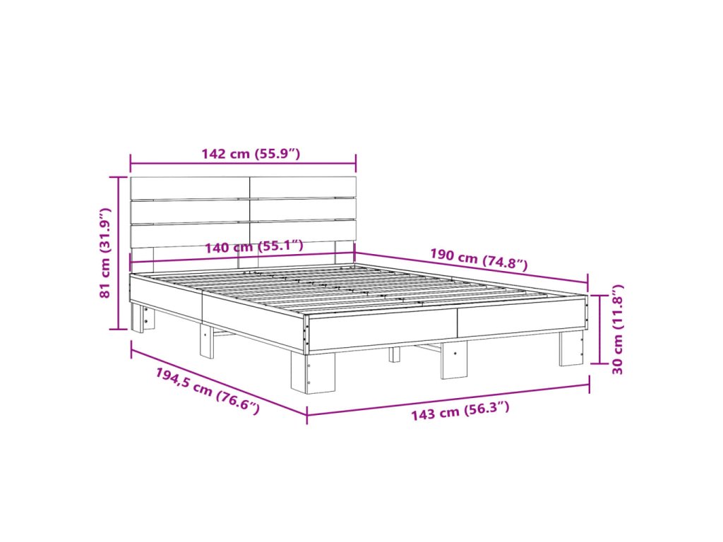 Rám postele šedý sonoma 140 x 190 cm kompozitní dřevo a kov 3280170