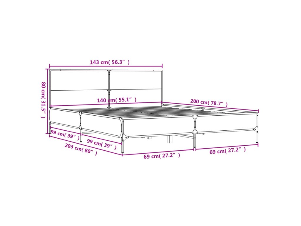 Rám postele šedý sonoma 140 x 200 cm kompozitní dřevo a kov 3280000