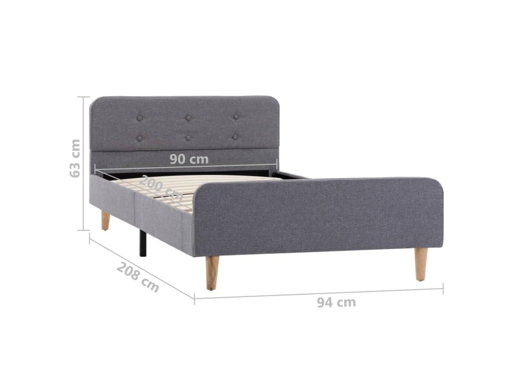 Rám postele světle šedý textil 90 x 200 cm 284900