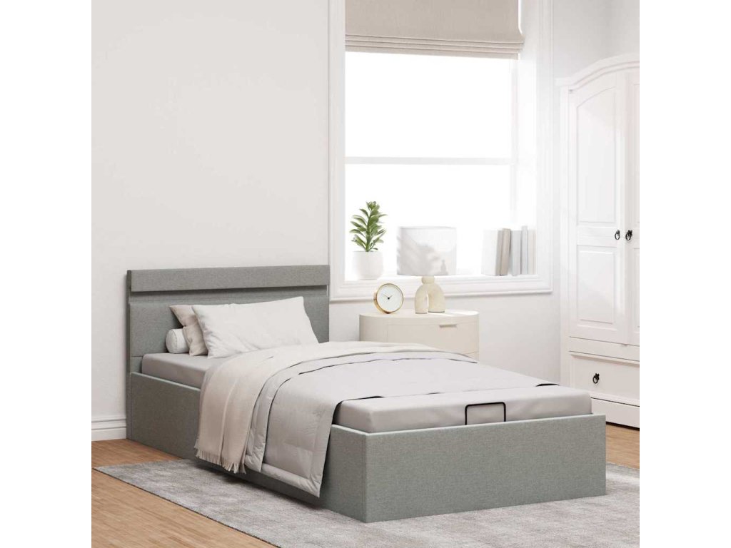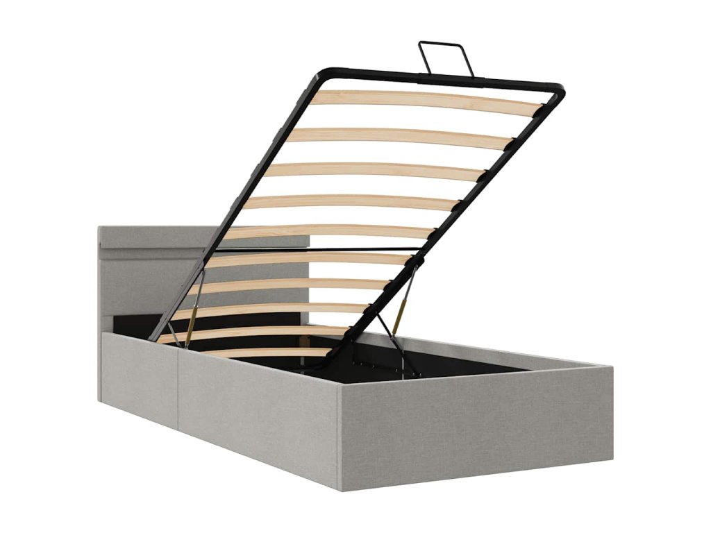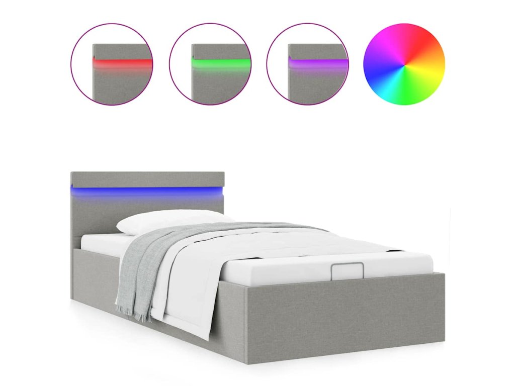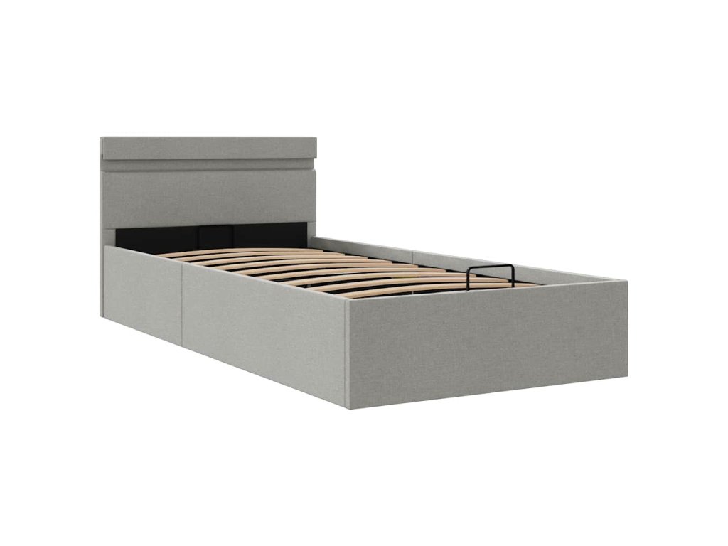 Rám postele úložný prostor LED světle šedý textil 90 x 200 cm 285606