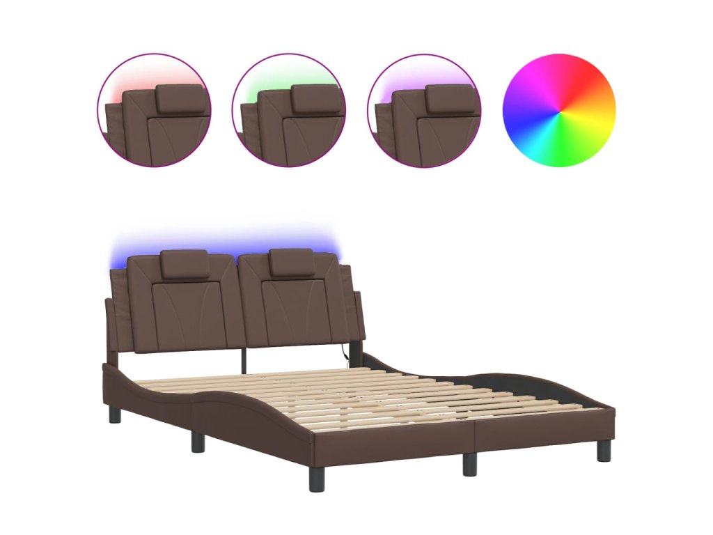 Rám postele Viana s LED bez matrace hnědý 140 x 190 cm 3214017