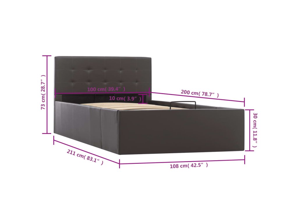 Rám postele zvedací úložný prostor šedý umělá kůže 100 x 200 cm 285523