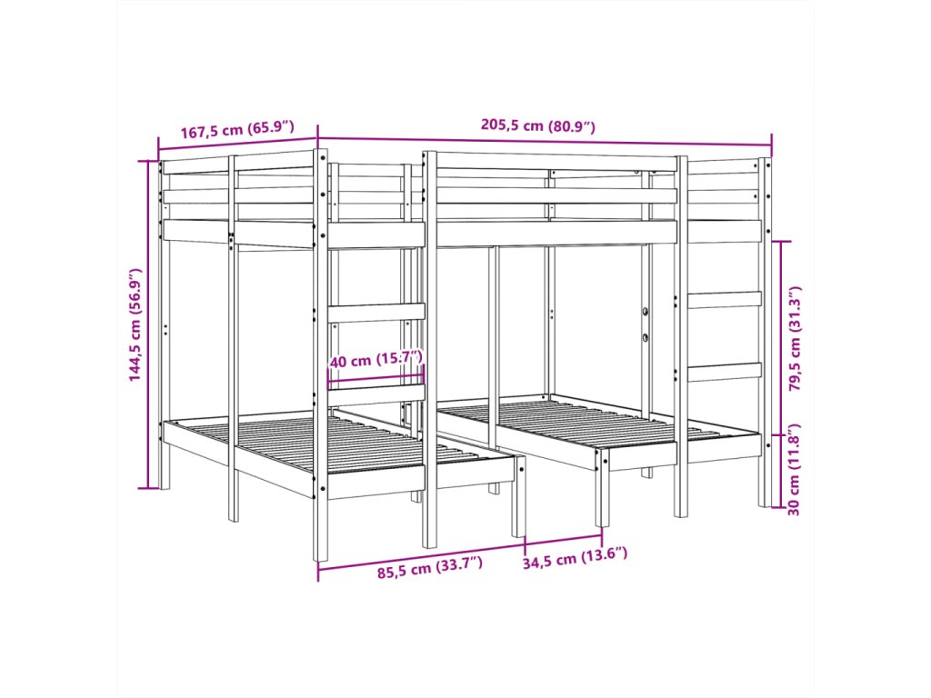 Rám trojité patrové postele 160x200/80x160 cm masivní borovice 3308580