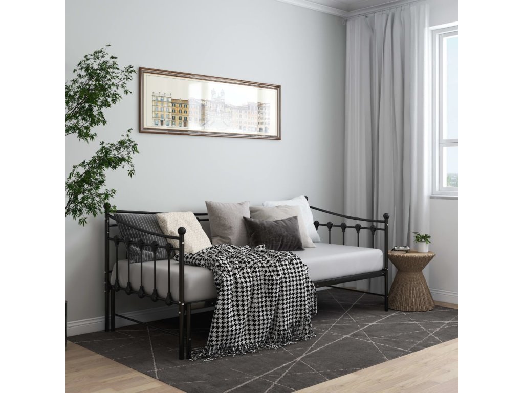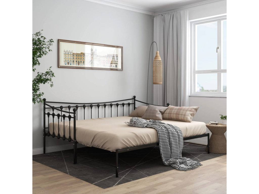 Rám vysouvací postele/pohovky černý kovový 90 x 200 cm 324758