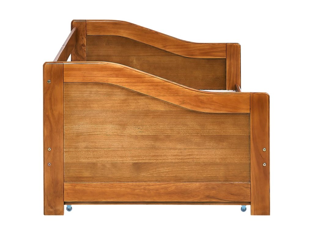 Tento sedací nábytek, vybavený výsuvnou spodní postelí se 4 pojezdovými kolečky, je přes den pohodlná pohovka a večer komfortní postel. Tato rozkládací pohovka šetří prostor ve vašem pokoji a zároveň poslouží jako dvojlůžko, je to tudíž výborná volba pro malé byty. Spodní lůžko je vybavené postranicí, která ochrání spáče před překulením se z postele. Rám postele tvoří robustní dřevěná konstrukce, která je zárukou dlouhé životnosti i při každodenním používání. Sestavení produktu je snadné.