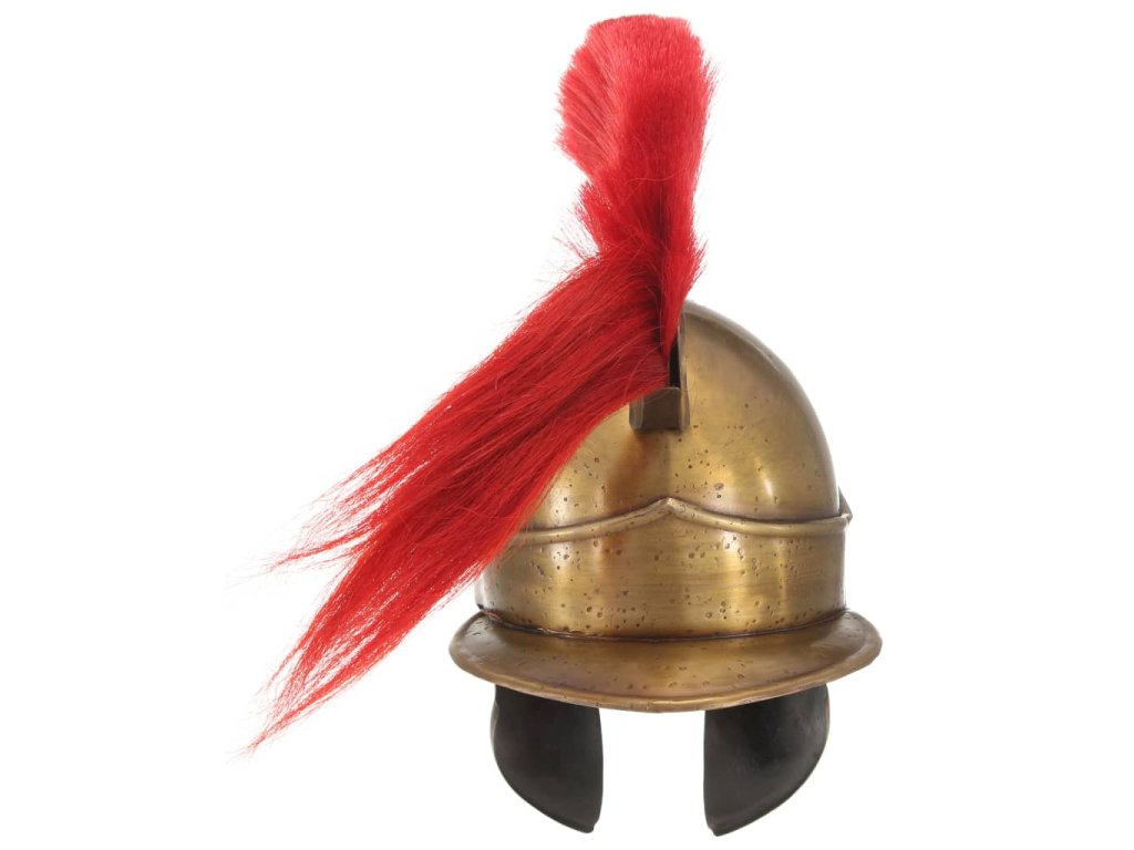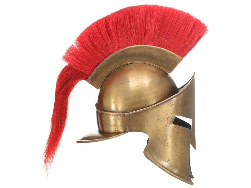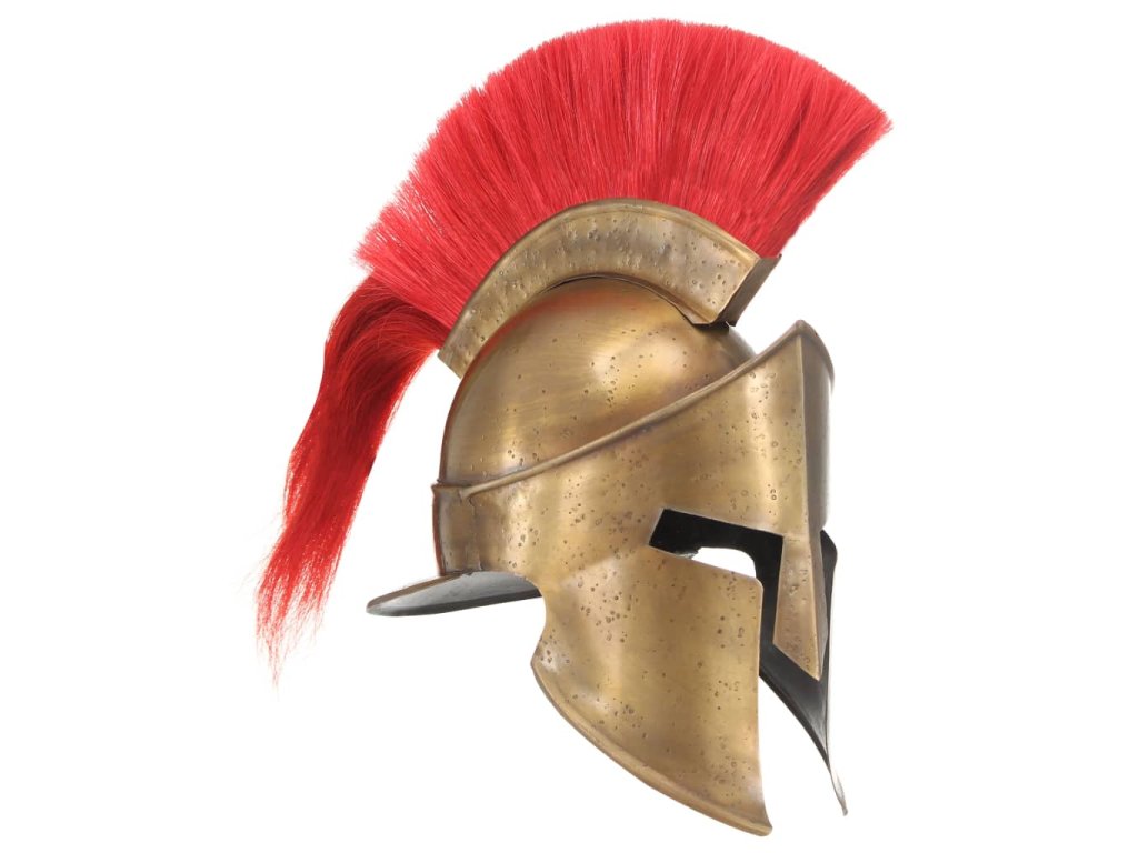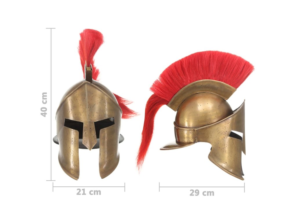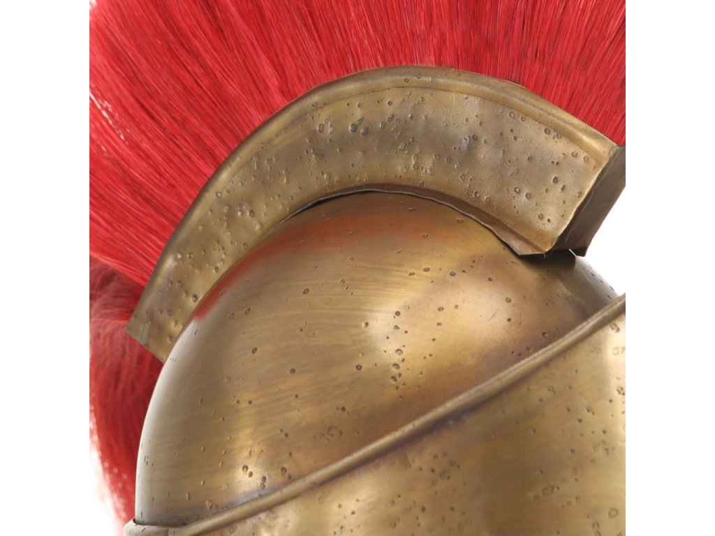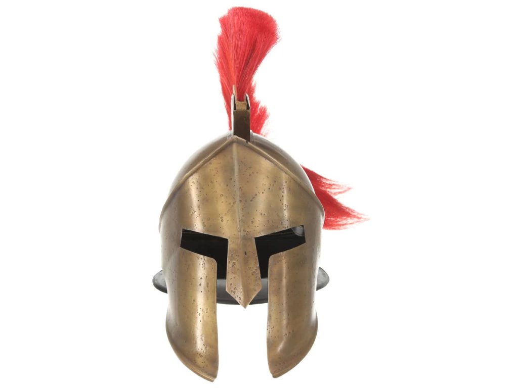 Přilba je přesná replika původní řecké starověké přilby vojenské uniformy. Je zhotovená z oceli 18. Kombinací původního designu s odolným materiálem vznikla působivá přilba, která dokonale doplní vaši stávající výbavu. Tato spartská přilba s červeným chocholem má dvě dlouhé lícnice, které chrání obličej a ve středu se spojují ve tvaru T. Tato historická přilba je také působivým výstavním kusem.